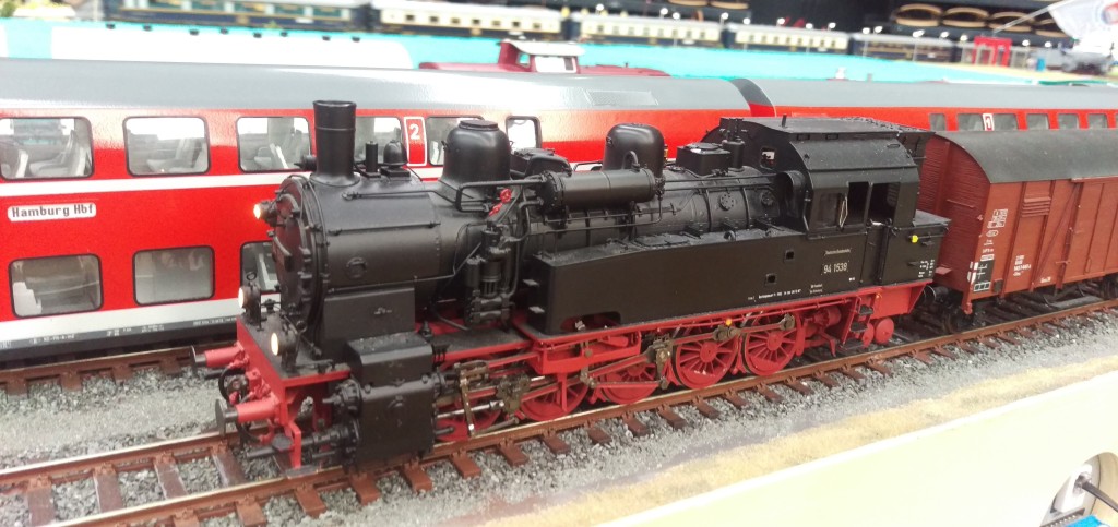 Zum zweiten Mal sind wir mit unserer Anlage in Neumünster dabei. Diese Ausstellung präsentiert nicht nur Modellbahn, sondern lockt u.a. auch Hobbykollegen aus den Bereichen Schiffs-, Flug- und Automodellbau in zahlreichen Ausprägungen an. Die Vorführungen der Modell-Trucks, -Rennwagen oder -Schiffe (im großen Wasserbecken) bringt auch die Modelleisenbahner mal dazu über den eigenen Hobbyrand hinüberzusehen... Leider hat das auch dazu geführt, dass bei uns wenig von doch zahlreich bewegten Fahrzeugen fotografiert wurden. Für alle die mehr von Bau und Einsatz unserer neuen Formsignale (oder den bereits älteren Lichtsignalen wissen möchten) gibt's einen neuen, noch auszubauenden, eigenen Abschnitt unter „Die Anlage – Signale“.