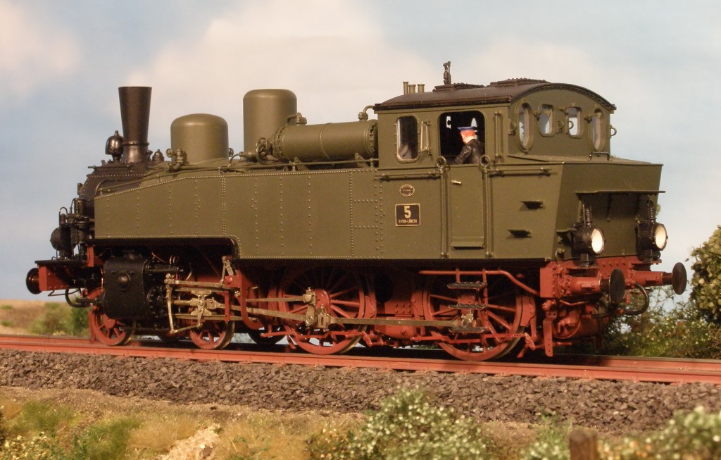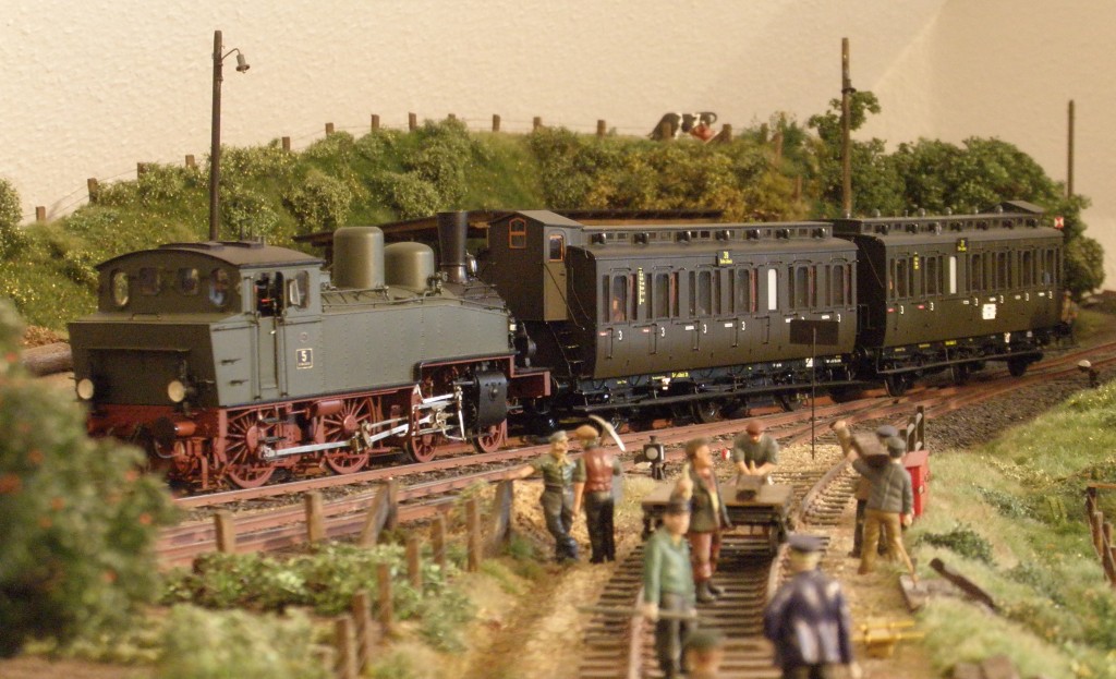 Lok Eutin-Lübeck Nr. 5 (T5.2) und die Nebenbahnwagen Eutin-Lübeck Nr. 95 und 97
