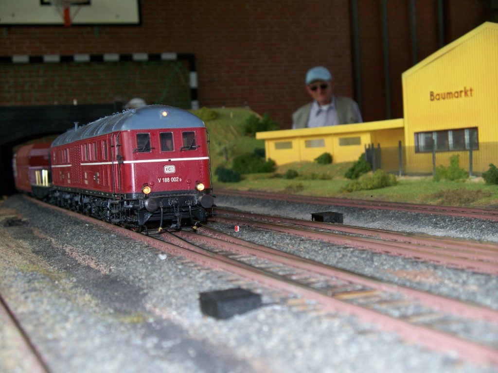 der Anlage, wie der vor unserem Baumarkt abgestellte Bundesbahn 628.