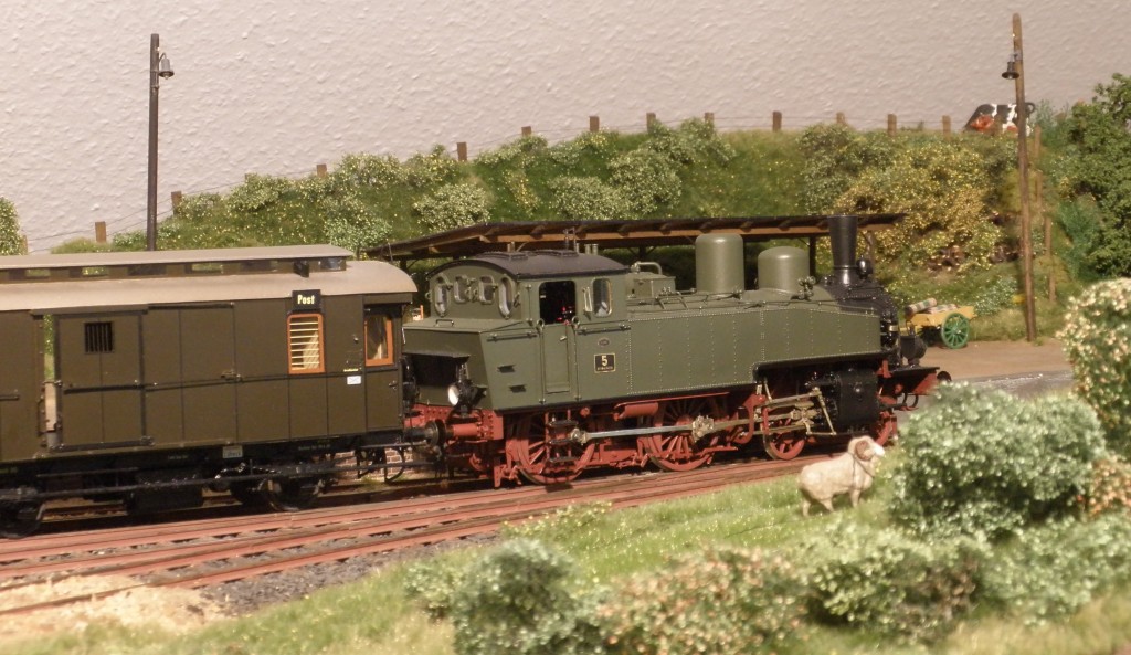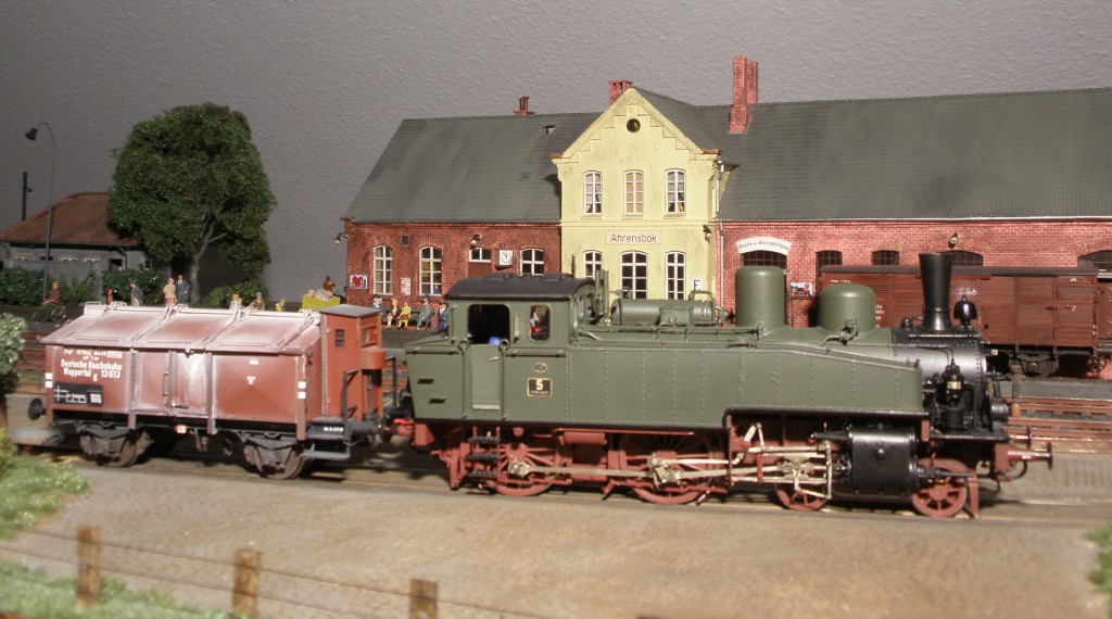 Lok Eutin-Lübeck Nr. 5 (T5.2) und die Nebenbahnwagen Eutin-Lübeck Nr. 95 und 97